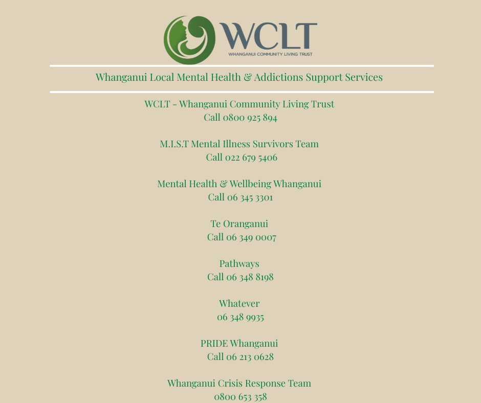 • MHAT Mental Health Assessment Team Whanganui – 0800 653 358